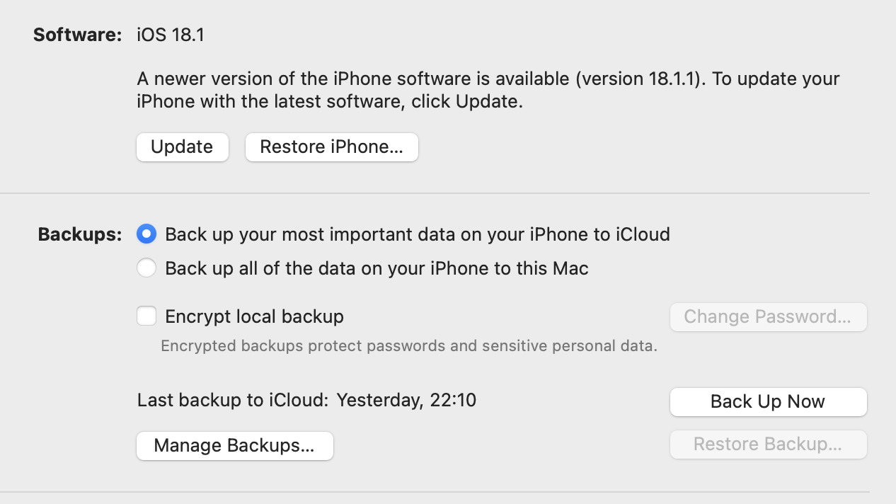 My iPhone 18.2v -> 18.1v (downgrade)