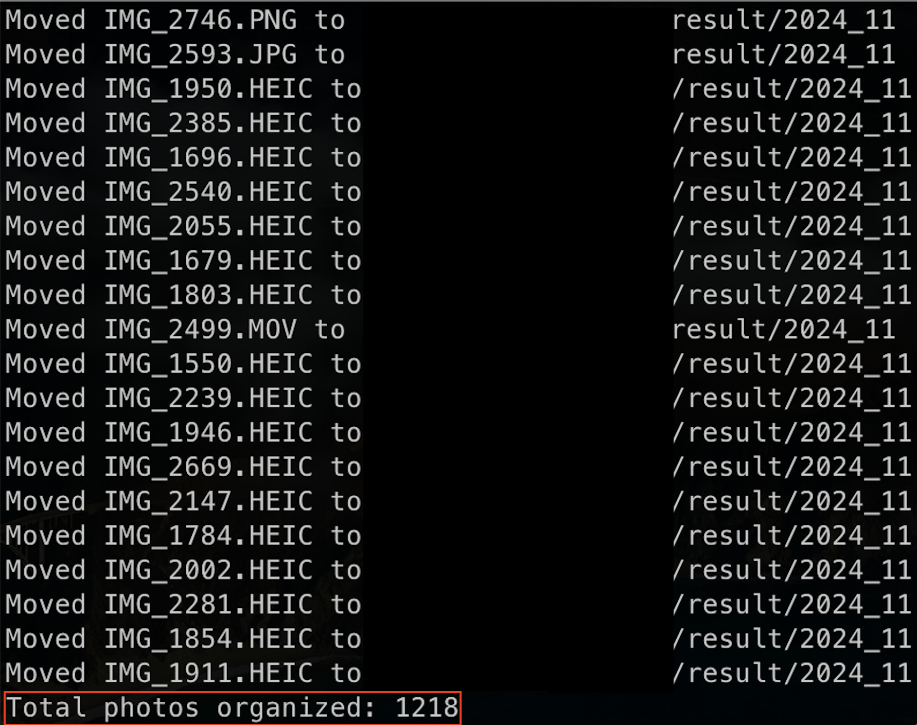 directory : Photos has been sorted and saved in the [Year]-[Month] formatDisplay the total number of files saved